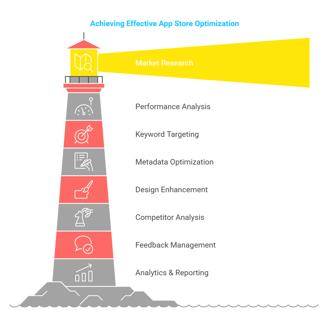 An ongoing App Store Optimization strategy ensures continuous app store performance improvements, helping you maintain long-term growth and visibility even as competition increases.
