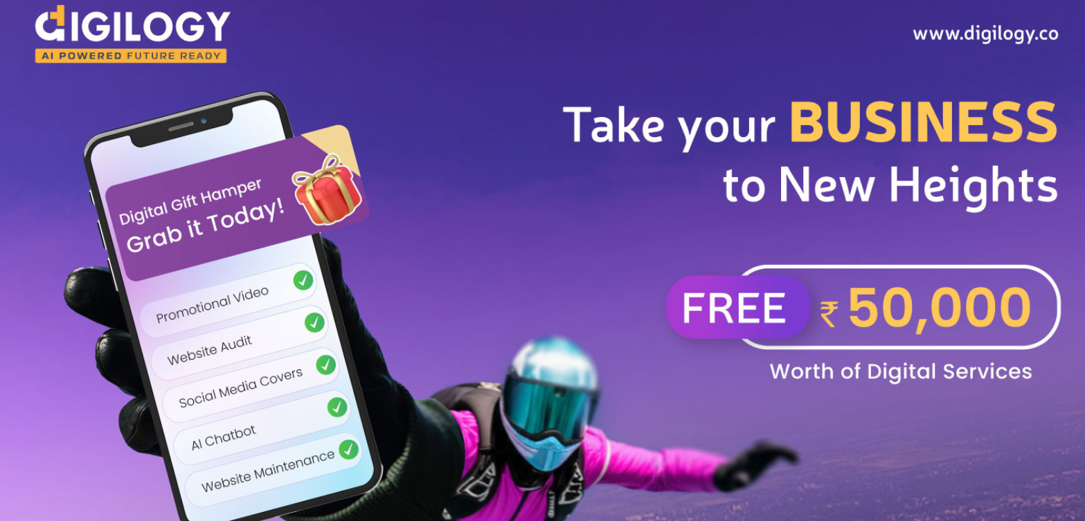 At Digilogy, we know how essential it is for businesses to establish a strong digital presence. That’s why we’re offering 5 valuable services—worth ₹50,000—absolutely free to help your business get ahead. Whether you’re looking to improve SEO, enhance social media engagement, or optimize your website performance, we’ve got you covered.